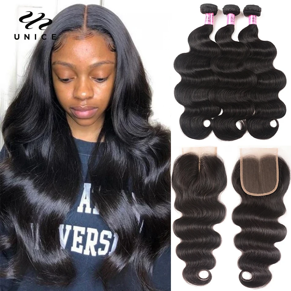 Amazon Com Unice Hair Hd Lace Closure 5x5 Invisible Knots Lace Closure With 3 Bundles Brazilian Body Wave 100 Human Hair With Transparent Lace Closure Natural Color 16 18 20 14inch Beauty Personal Care